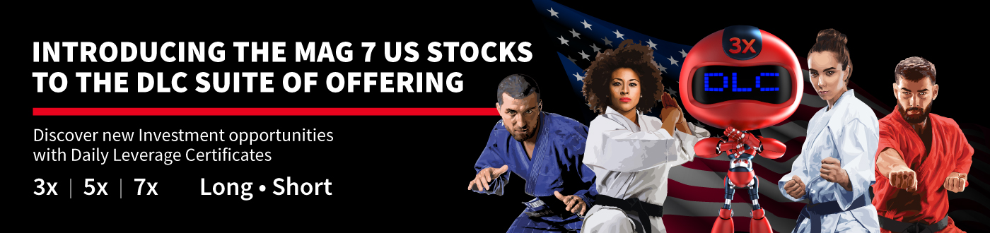 By default, 3 indices and single stocks with the highest change in value traded compared to the last trading day are displayed. User can select any DLC Underlying Asset from the drop-down menu.